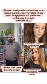 ВІТАННЯ З ДОСЯГНЕННЯМИ У І ЕТАПІ ВСЕУКРАЇНСЬКИХ УЧНІВСЬКИХ ОЛІМПІАД